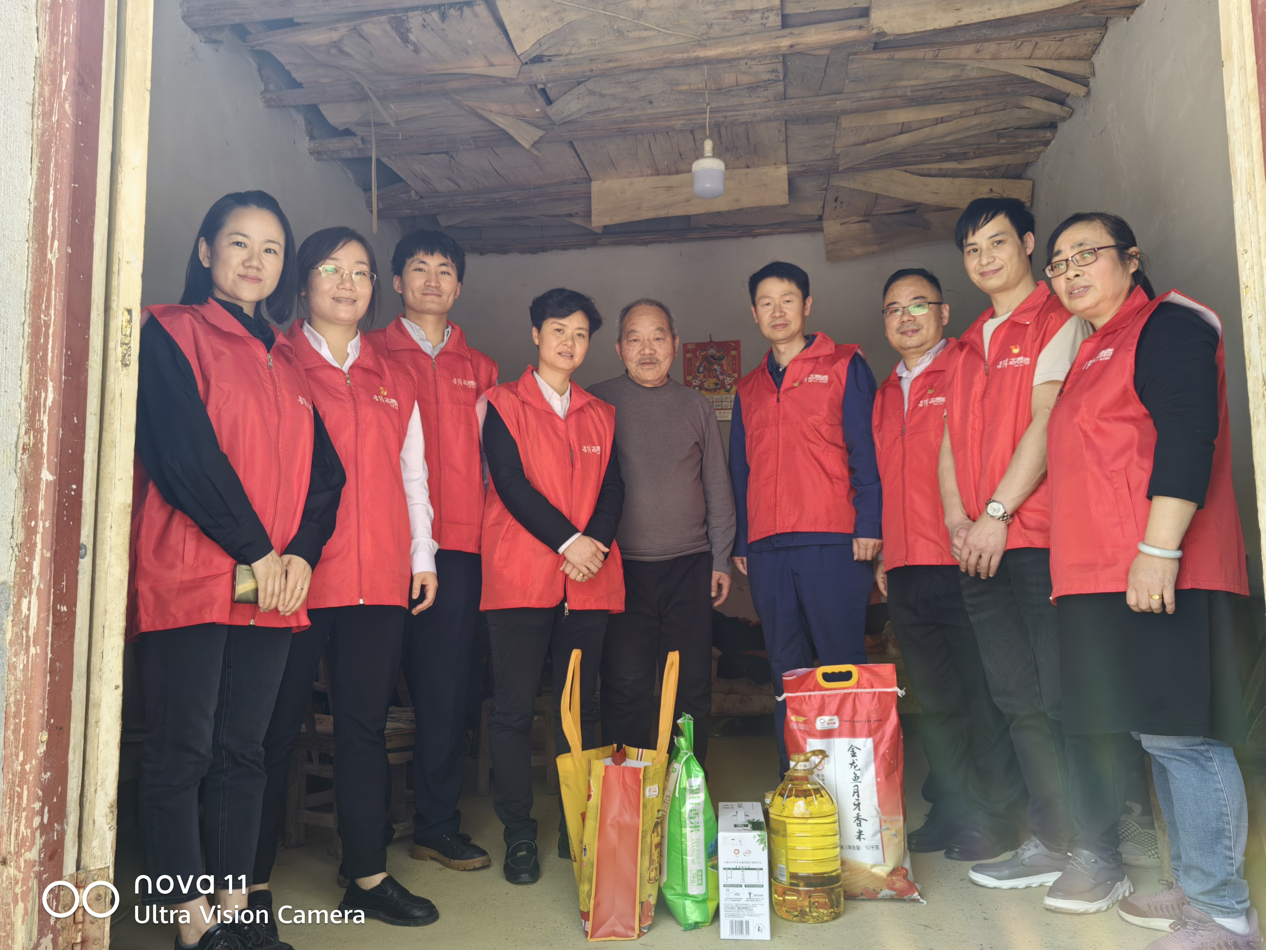 最后慰问的郑利民爷爷家,郑爷爷今年82岁了,一个人生活在山脚下,屋内同样的简陋,党的政策好,给他建了简易的瓦房,通水通电,至少不要风餐露宿,我们的到来给他的小屋增添了许多热闹,他说很久没这么多人到他家来了,他非常开心,住在山脚下平时连个说话的人都没有,听着郑爷爷这般诉说,我们心里挺难受的,人老了其实不需要太多,陪伴就是对他们最好的关爱。