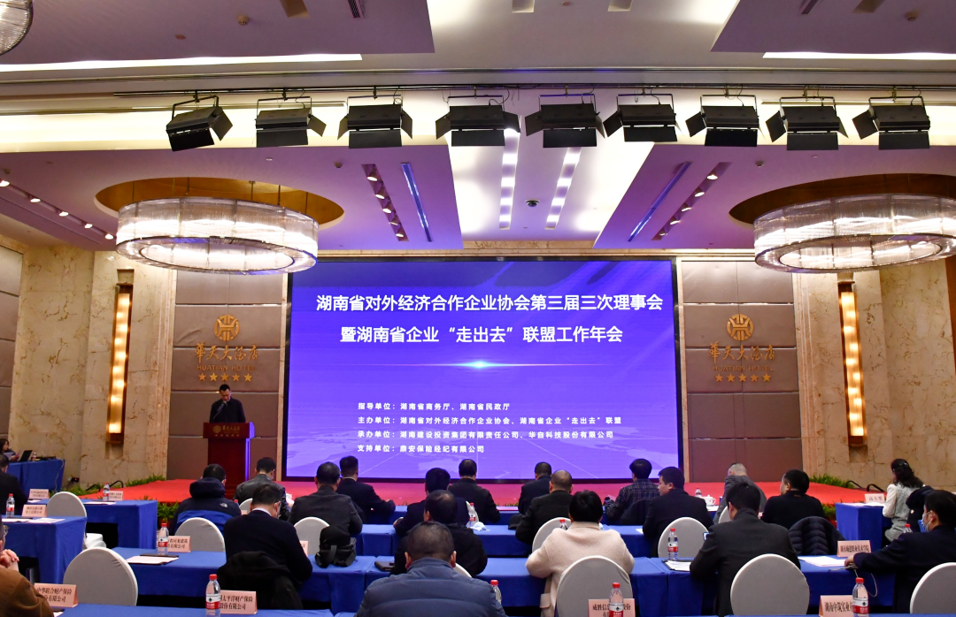 2月3日,湖南省对外经济合作企业协会(以下简称“协会”)第三届三次理事会暨湖南省企业“走出去”联盟工作年会在长沙召开。湖南省商务厅二级巡视员楼良金、对外投资和经济合作处处长胡松强和副处长李正淳等领导出席本次会议。协会理事单位、湖南省企业“走出去”联盟共70余家单位代表参加会议。本次会议由湖南建设投资集团有限责任公司、云博平台客服承办,鼎安保险经纪有限公司支持。会议由协会秘书长刘浦主持。