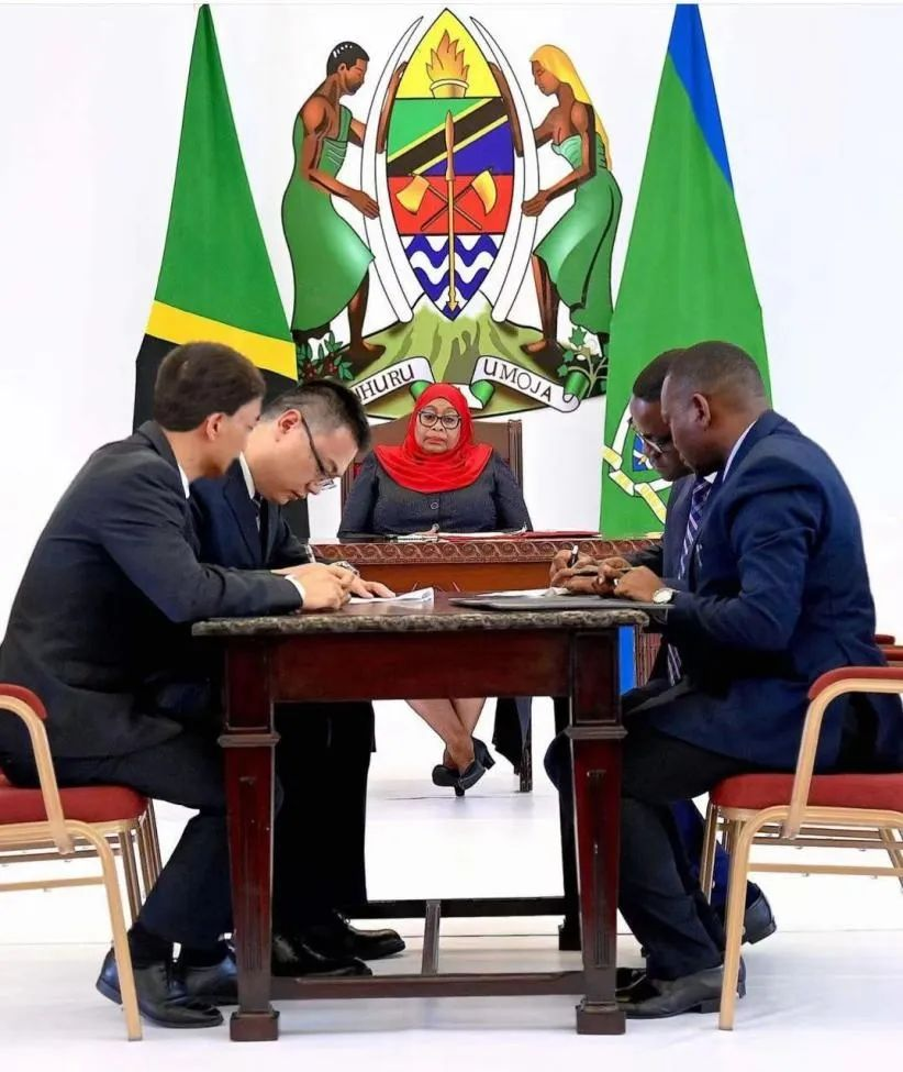 出席此次签约仪式的还有坦桑尼亚能源部长、矿业部长、国防部长等政府高官,签约仪式全程由坦桑尼亚国家广播电视台等官媒以现场直播的方式向全球播出。
