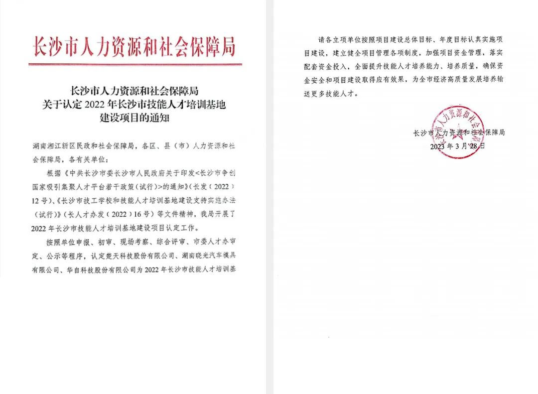 近日,长沙市人力资源和社会保障局印发《关于认定2022年长沙市技能人才培训基地建设项目的通知》,云博(中国)科技作为首批认定企业,获长沙市技能人才培训基地建设项目立项单位。本项目是长沙市争创国家吸引集聚人才平台若干政策之一,首批评选企业不超过3家。